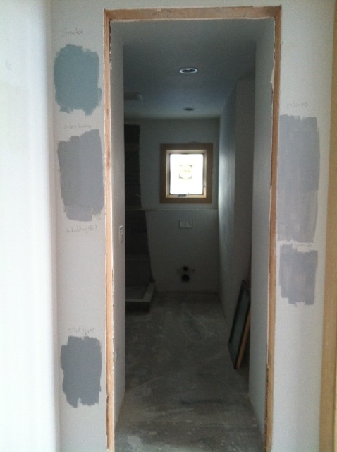 We decided to go with the white doors and trim, then paint the hallway a light gray. We went with a color called White Water. We do have a water theme going on here, so that sure sounds like a good name.